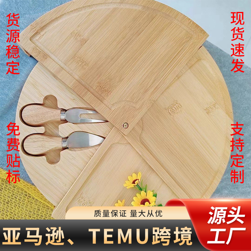現物竹製チーズ板セット円形回転可能チーズ板まな板刃物チーズ板パン果物皿