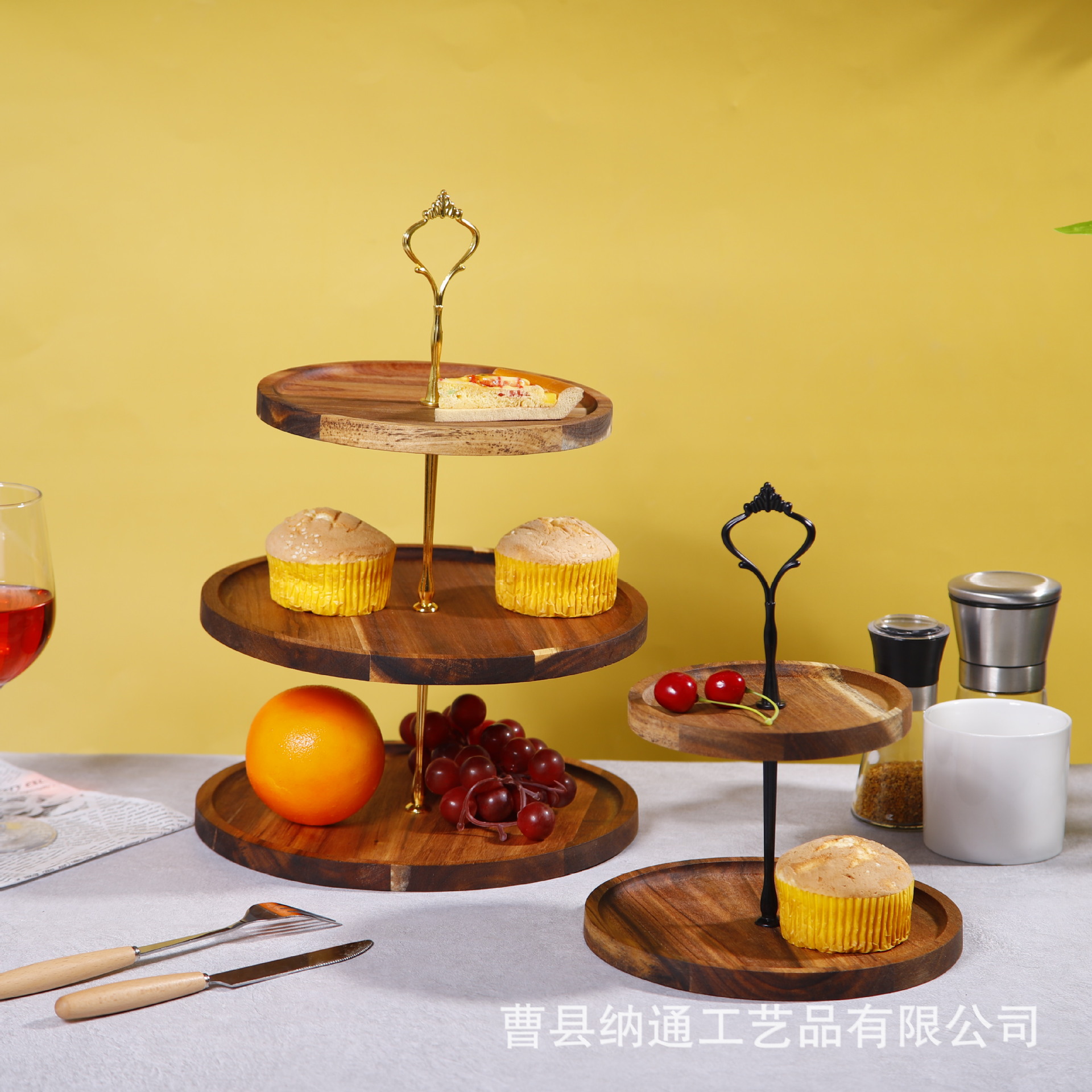 メーカー卸売り木製二重物置棚デスクトップ二重三層トレイ結婚デザート皿果物棚