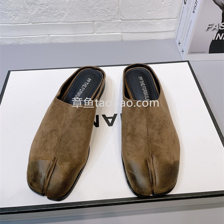 2024 秋の新レトロヌバックレザーピッグトゥスプリットトゥシューズフラットサンダルカジュアルレイジースリッパつま先ハーフスリッパ