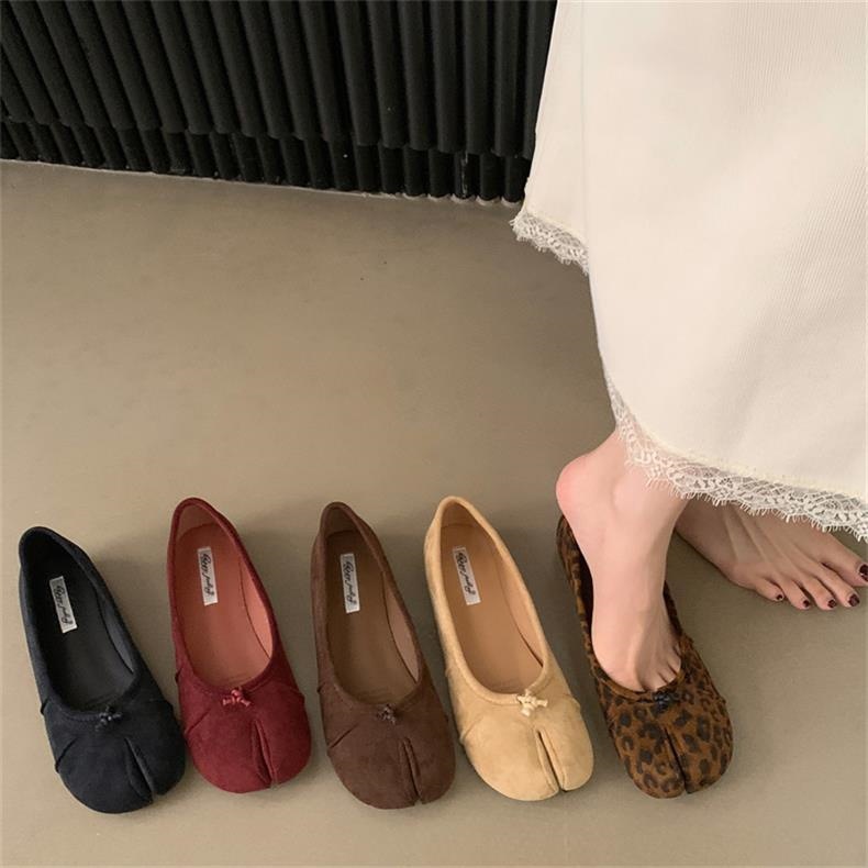 女性用フラットシューズ 2024 新しいレトロソフトソールピッグトゥシューズ分割つま先シューズニッチプリーツおばあちゃんの靴ビーニーシューズ