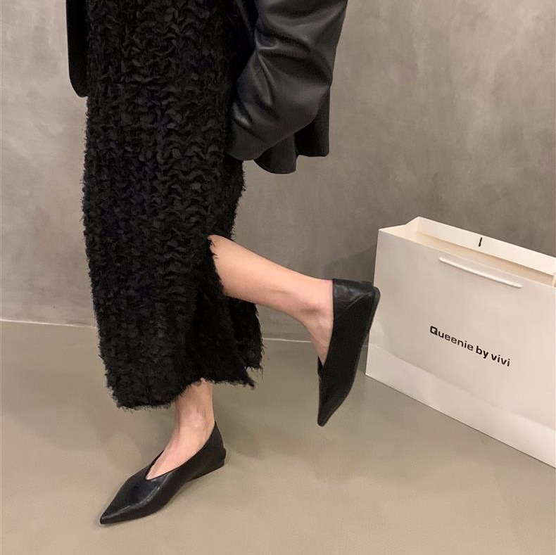 平底レトロポインテッドトゥヒョウ柄シングルシューズ婦人靴2025春秋フレンチソフトソール足が疲れにくい黒通勤靴