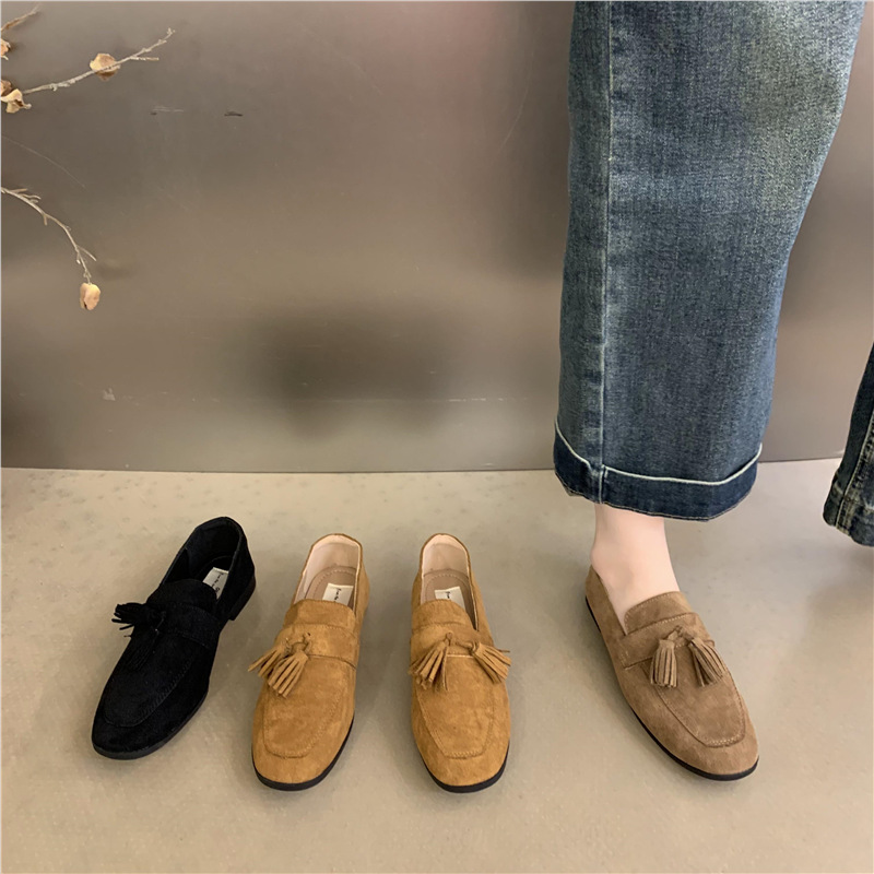 2024新型レトロなフリンジの角の靴の女性の柔らかい底のスエードの足は豆の靴のカジュアルな楽福の靴を踏んでいます。