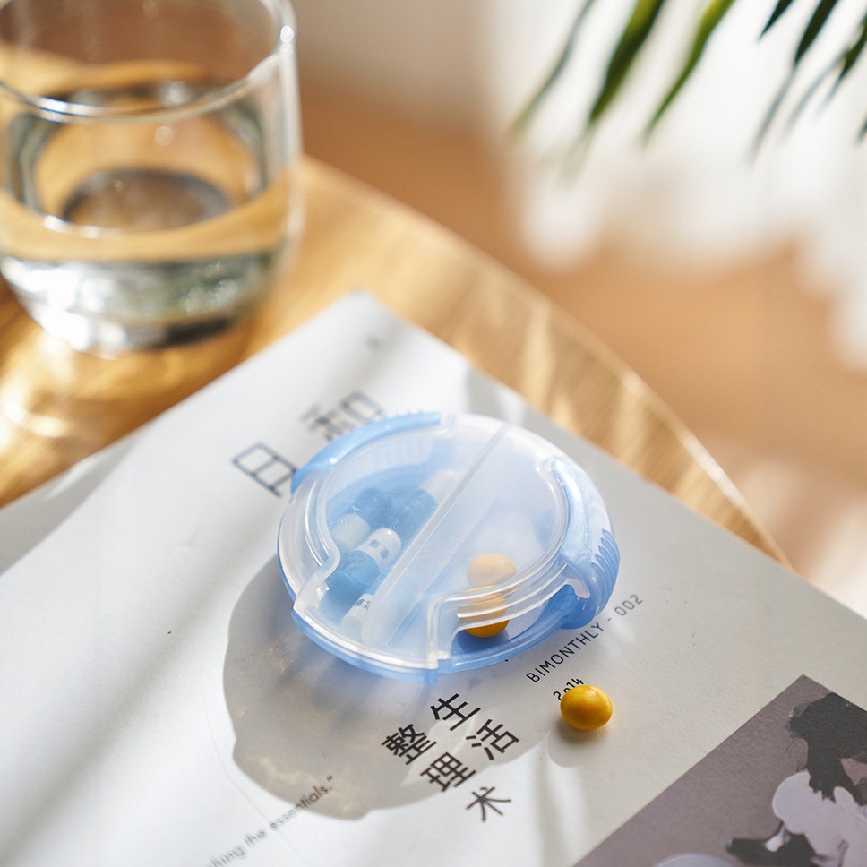 ポータブルシンプルなラウンドピルボックスプラスチックボックススライドカバーダブルコンパートメントピルボックスキャンディーお手入れが簡単な収納ボックス
