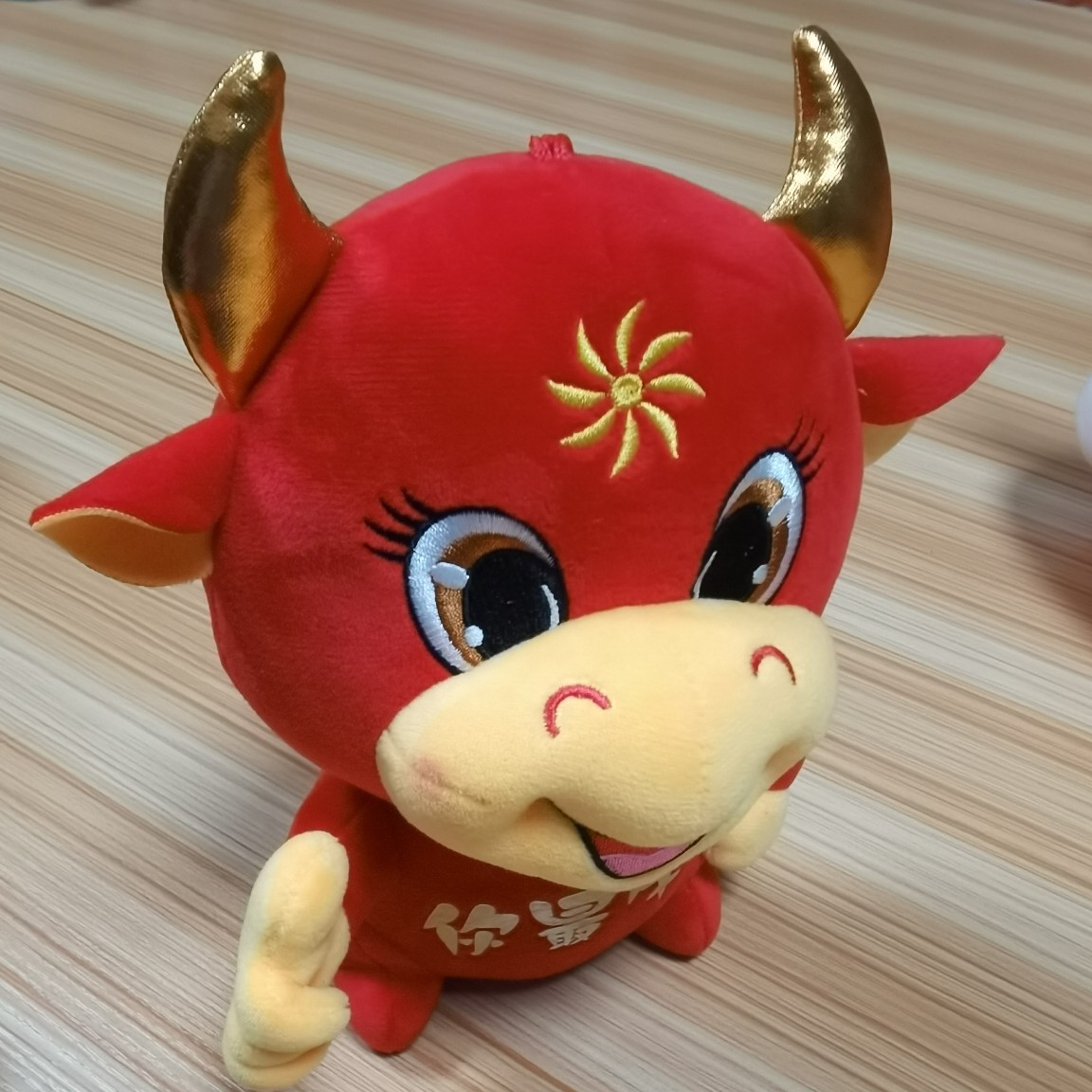 メーカーは牛年マスコットのぬいぐるみを供給しています。