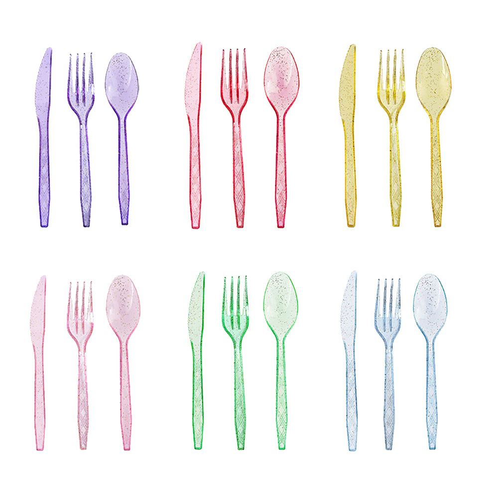 使い捨て金粉透明ナイフフォークスプーンマカロンカラーケーキプラスチックナイフフォークスプーン誕生日パーティー食器