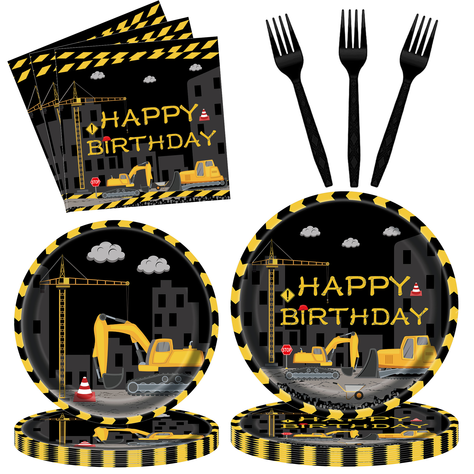 黒工事車テーマパーティー紙食器子供誕生日パーティー紙皿テーブルクロスパーティー用品工場卸売り