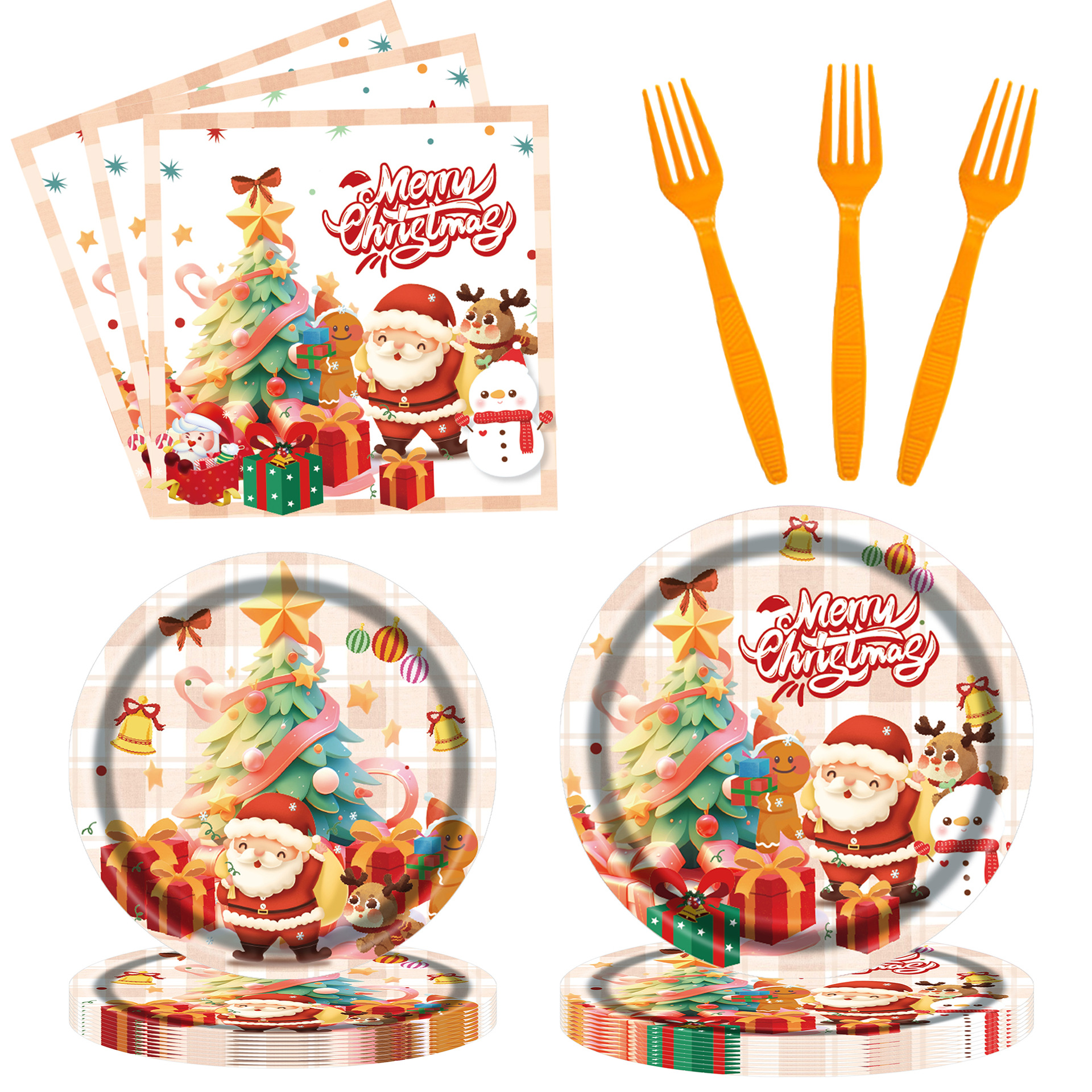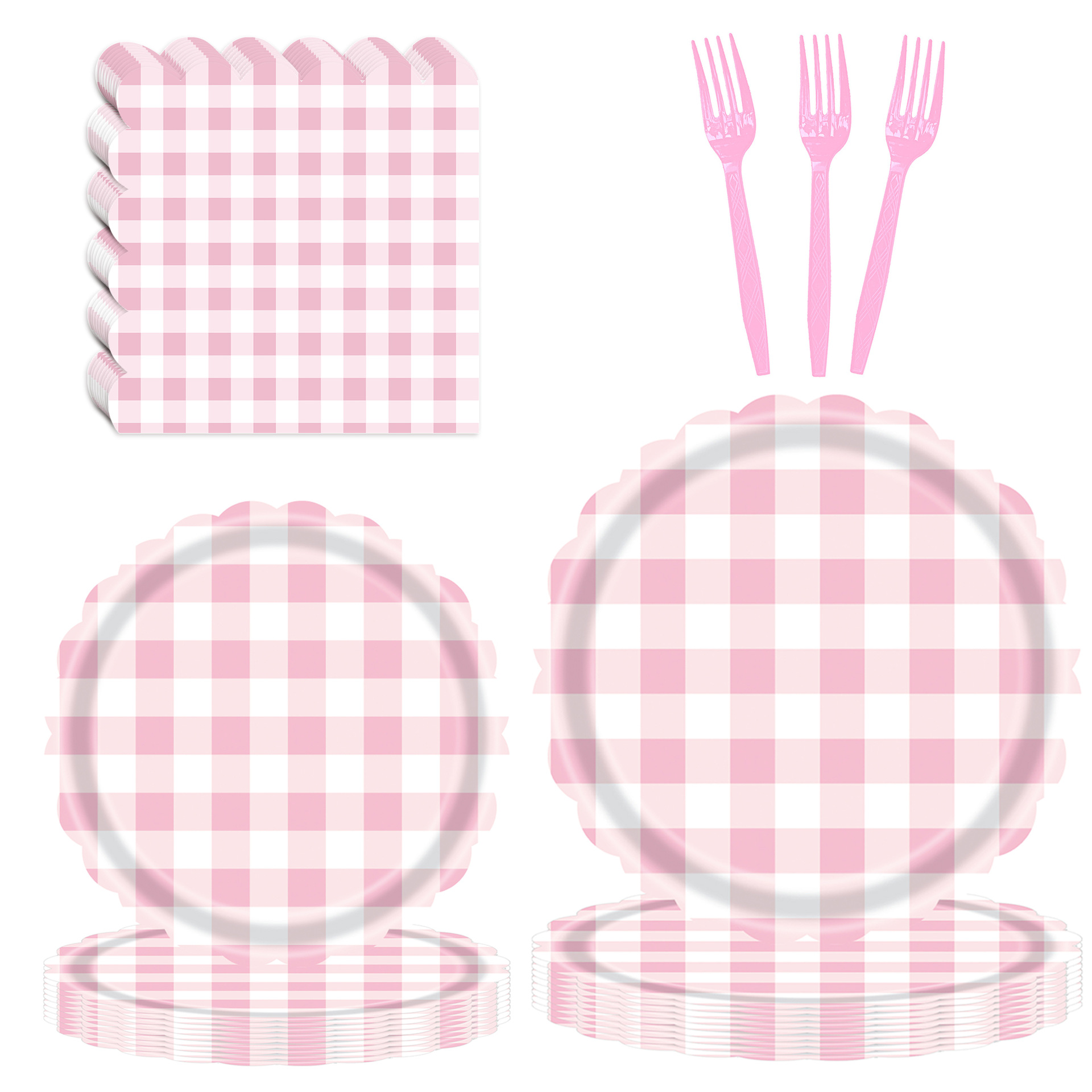 クリスマスピンク格子パーティー食器セット96pcs誕生日パーティーティッシュ紙コップ紙皿ナイフフォーク2025