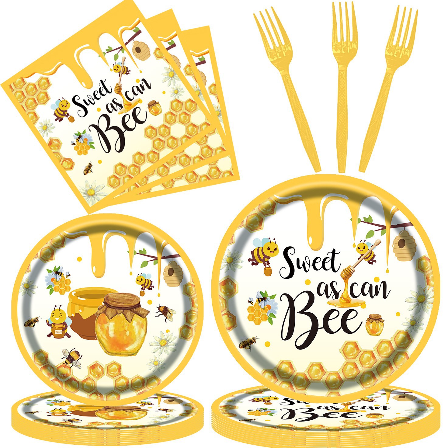 新しい蜂蜜テーマ赤ちゃん誕生日パーティー紙食器パーティー紙皿テーブルクロスパーティー食器96pcs