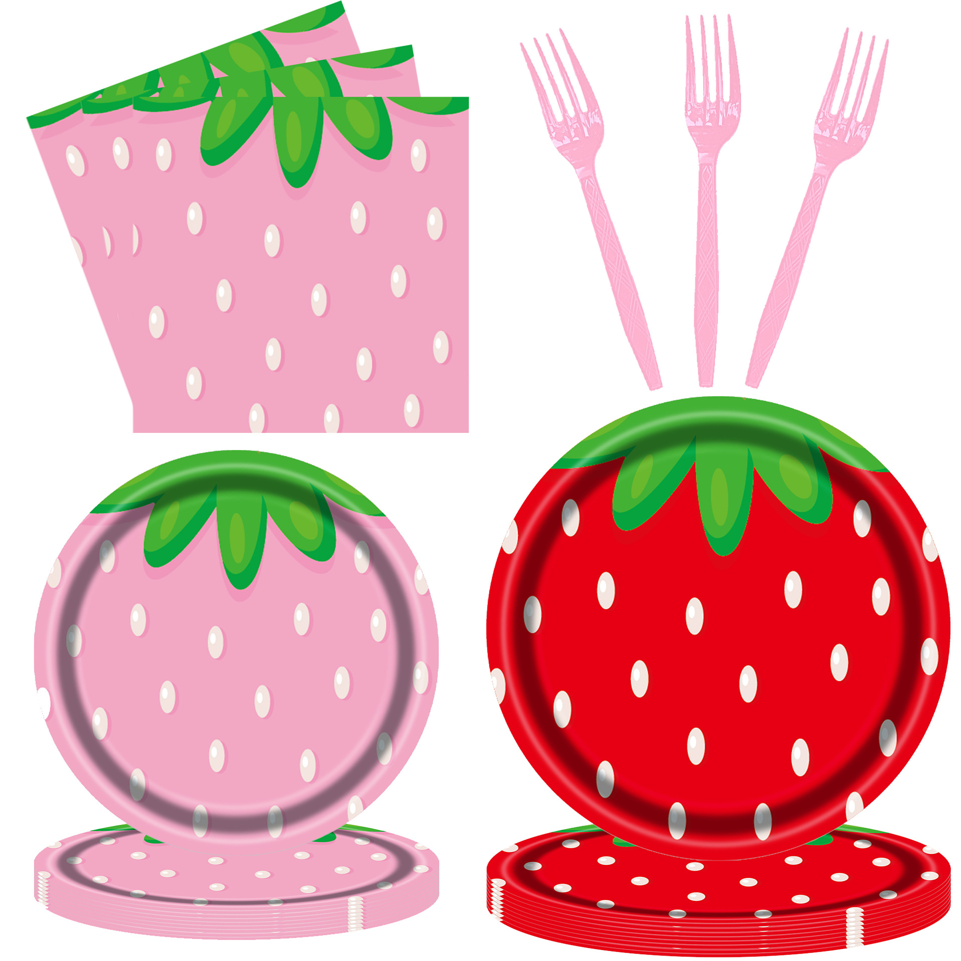 イチゴのテーマの新しいパーティー紙食器96pcs子供の誕生日パーティー食器ティッシュ紙コップ紙皿ナイフとフォーク
