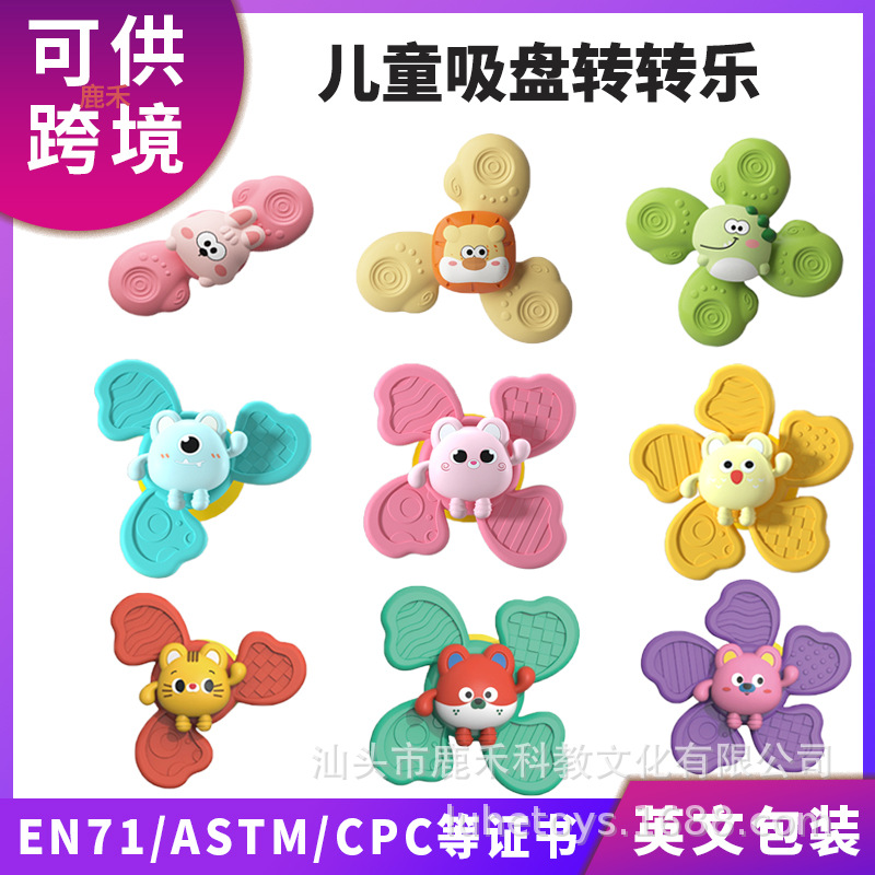 ベビー吸盤転楽浴室水遊びアニメ3葉回転シリカゲルかじりジャイロ子供知育玩具