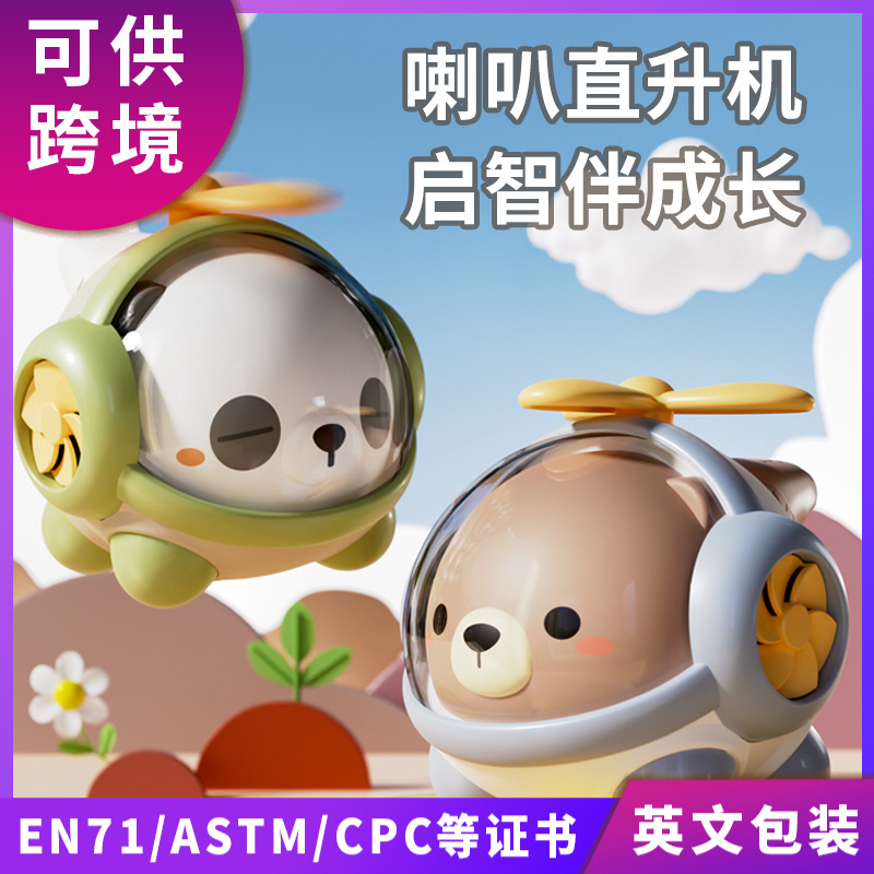国境を越えた口笛ヘリコプター漫画熊児童プレゼント卸売り赤ちゃんはひも付きの回転ラッパ飛行機のおもちゃを持っている