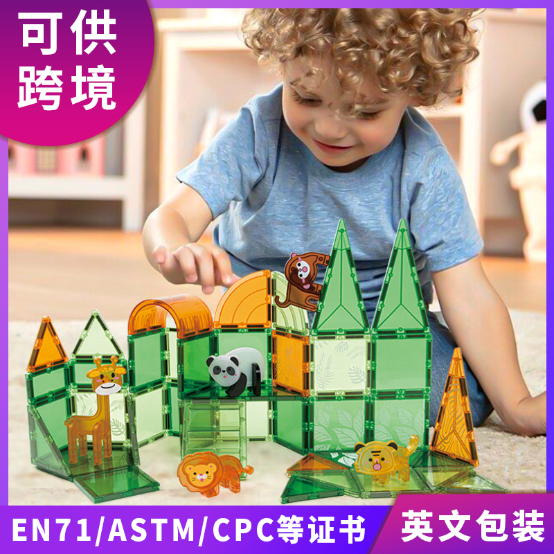 越境彩窓磁力片子供プレゼント新型ダイヤモンド強磁盛り合わせ動物磁気積み木玩具卸売り