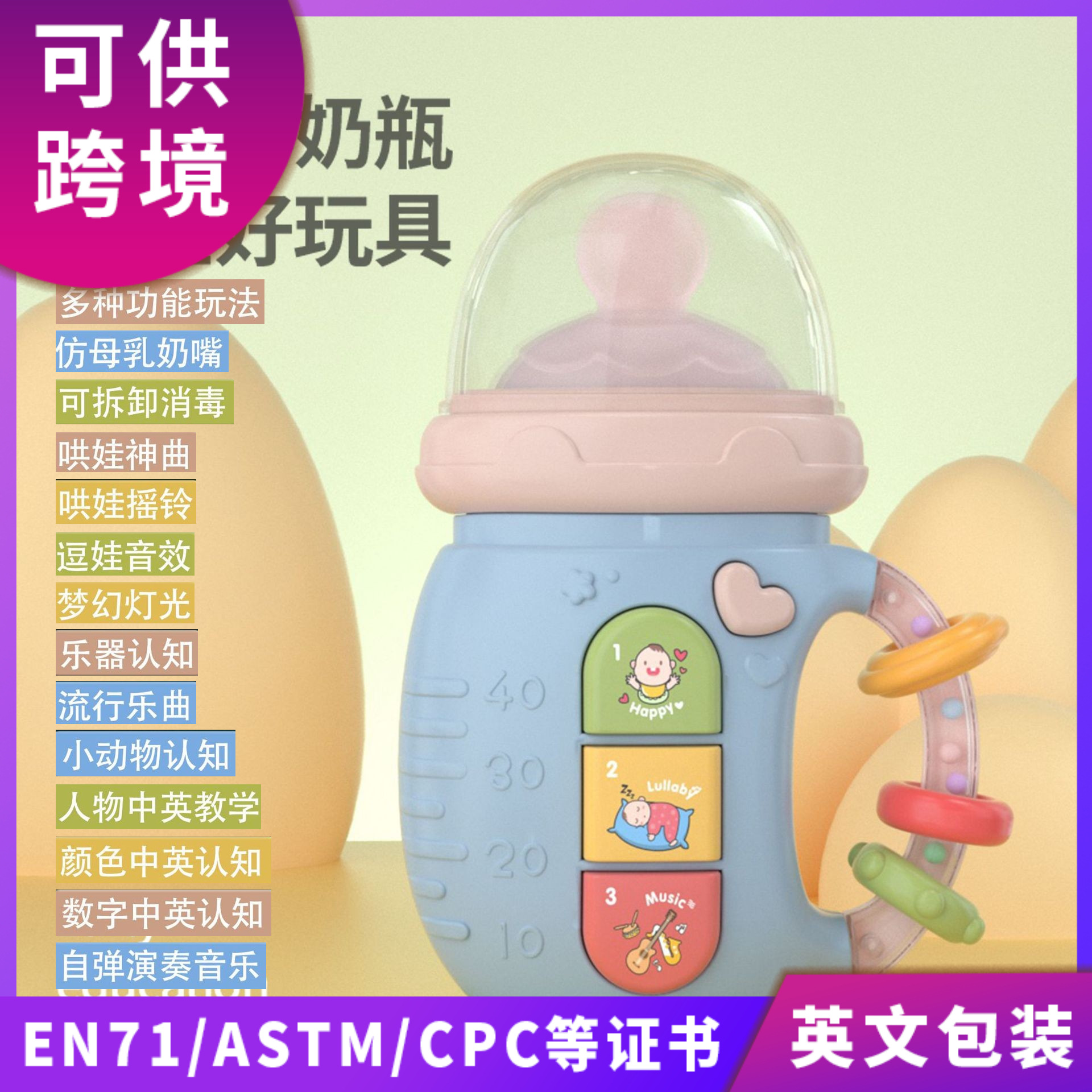 クロスボーダーの赤ちゃんの双語の照明の音楽は早く哺乳瓶の赤ちゃんに0-3歳を教えます。
