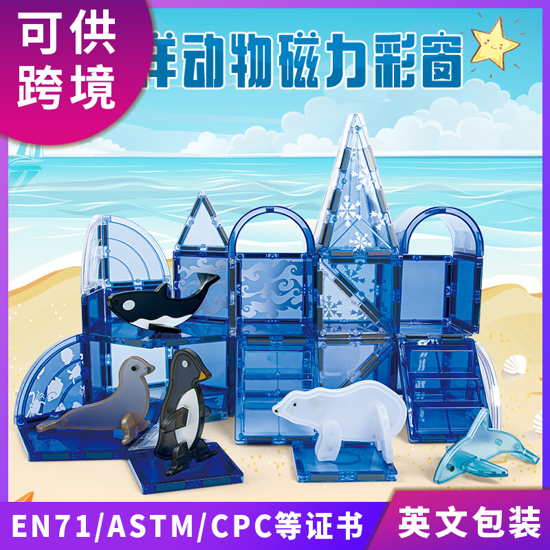 クロスボーダー海洋動物彩窓磁力片子供の益智は強い磁気積み木機構のプレゼントのおもちゃを組み合わせます。