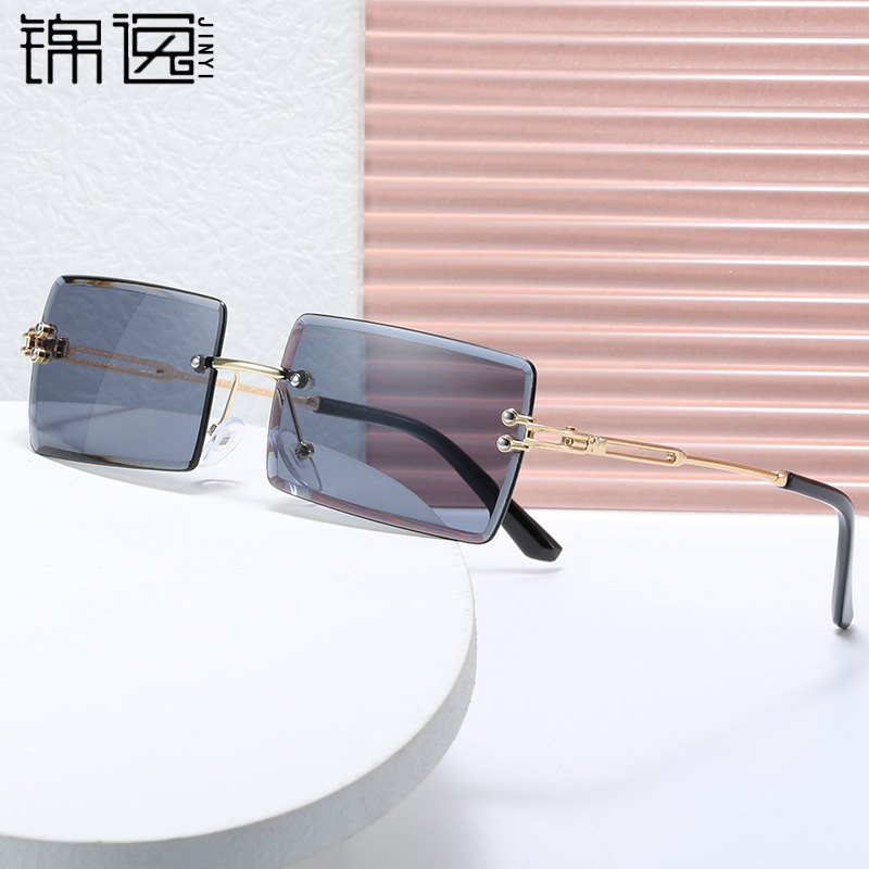 2021新型縁なしサングラスの四角い色とりどりのグラデーション色欧米のクロスボーダーinsファッション街でサングラスを撮ります。