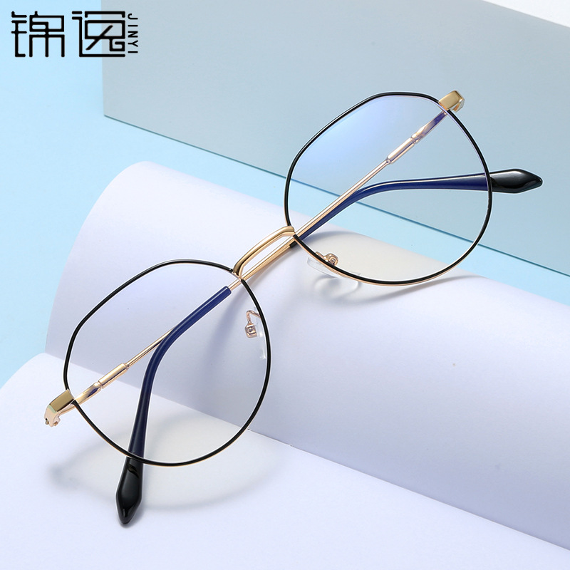 2021新型金属眼鏡フレーム男女モデル近視丸枠光学眼鏡フレーム付きブルーレイ防止平光鏡