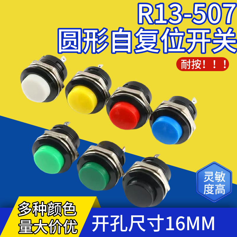 キースイッチボタンインチングスイッチ R13-507 開口部サイズ 16 ミリメートルラウンドロックなしセルフリセットスイッチ