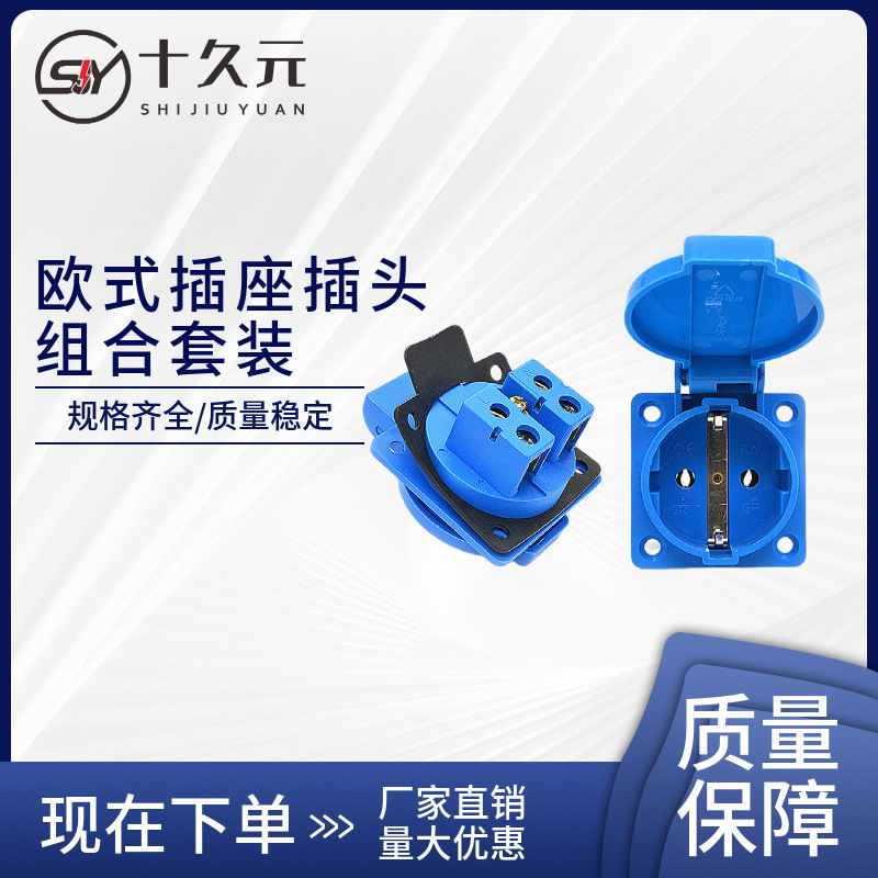メーカー直販ブルーヨーロッパ式防水ソケットプラグセット実験台ドイツ式防水ソケット16a