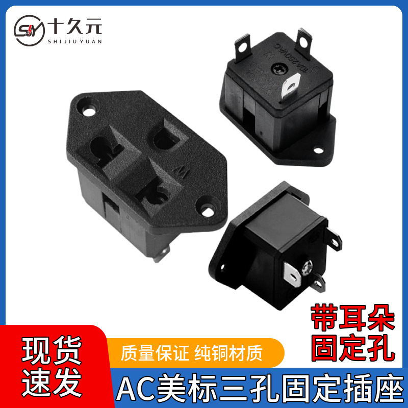 Ac国標3脚電源コンセント10a 3ジャック全銅芯開孔24*24mm修理部品工業コンセント