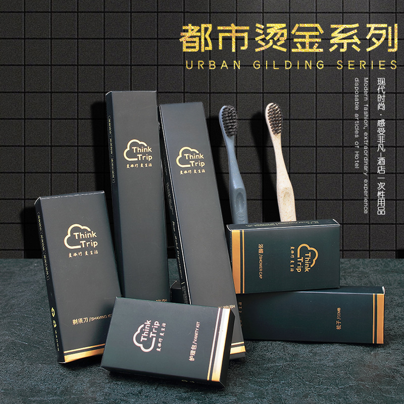 メーカー卸売り黒カードボックスホテル民宿洗面用品セット使い捨て歯ブラシ櫛シェーバー