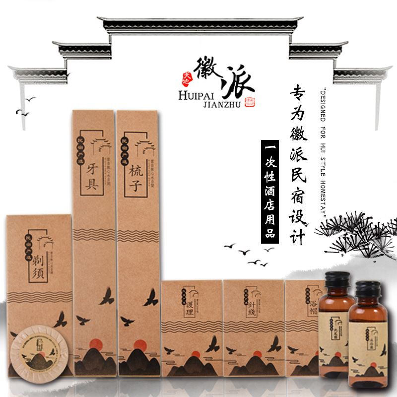 自然美学星ホテル民宿消耗品使い捨て歯ブラシ洗面用品歯ブラシ歯磨き粉入浴剤セット