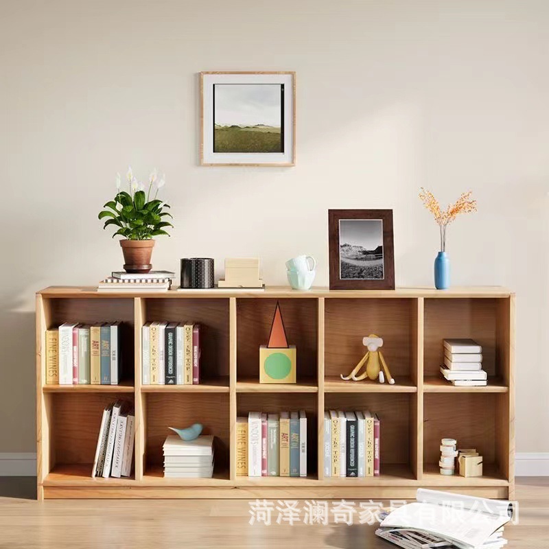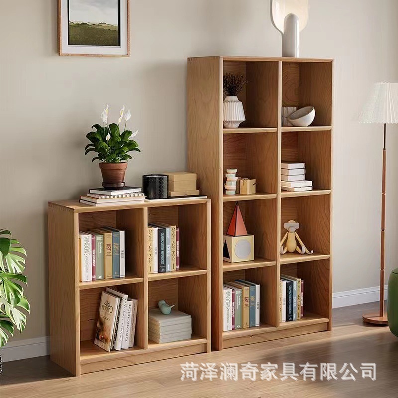 無垢材の出窓キャビネット、家庭用自由組み合わせ単層格子本棚、床置き子供用絵本おもちゃ収納ラック本棚