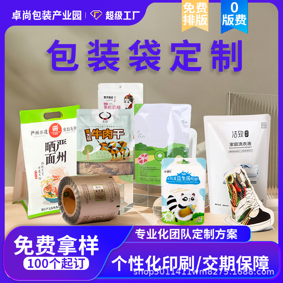 食品アルミホイル包装袋デジタル印刷肥厚四面シールジャーキーロールフィルムバックシール袋ドライフルーツティースタンドアップバッグ