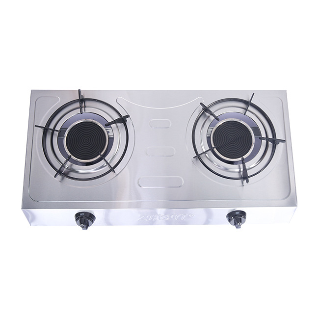 工場価格卸売厚いパネルステンレス双炉天然ガス液化ガス卓上ステンレス双眼ガスストーブ