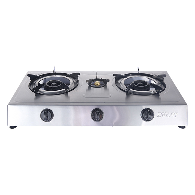 工場販売家庭用ガス炉液化ガス天然ガス卓上ステンレス鋼猛火電子点火三眼ガスコンロ炉
