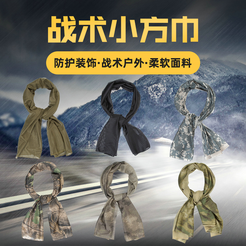 戸外戦術迷彩小方巾徒歩運動速乾マフラー防風砂偽装ネット目通気マフラー卸売り
