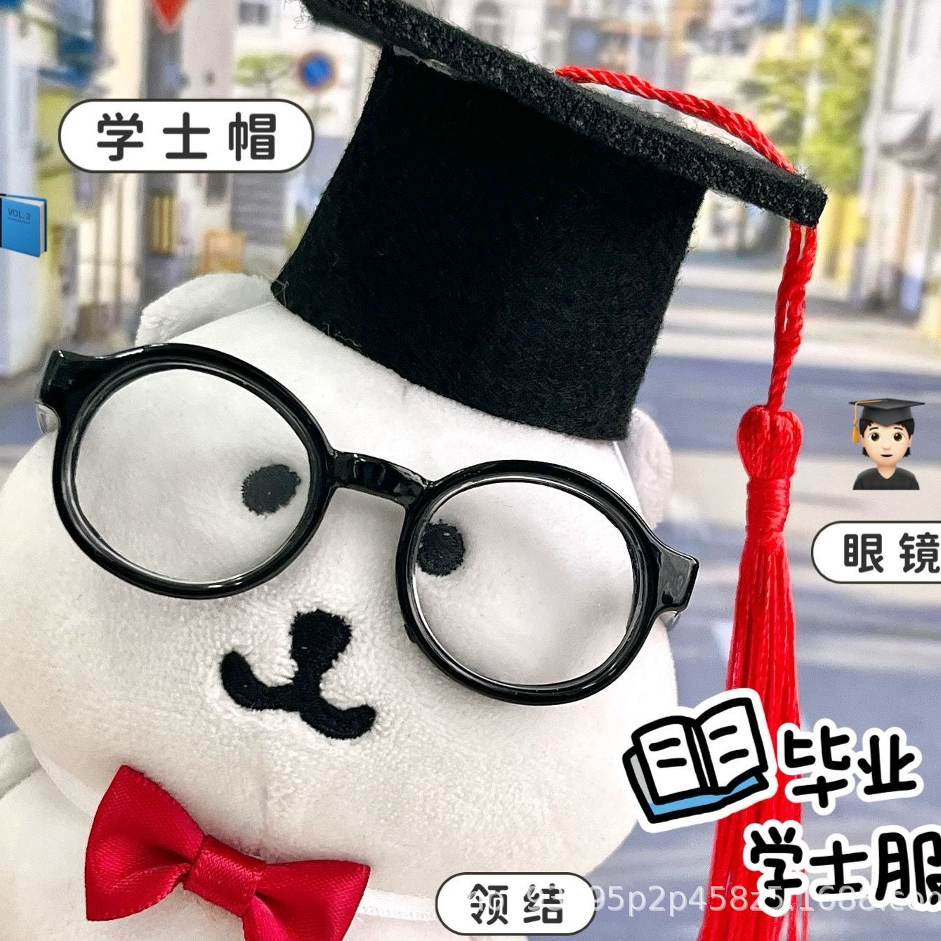 自嘲熊童衣13cm綿人形部品diy高颜値博士帽赤蝶結黒眼鏡かわいい