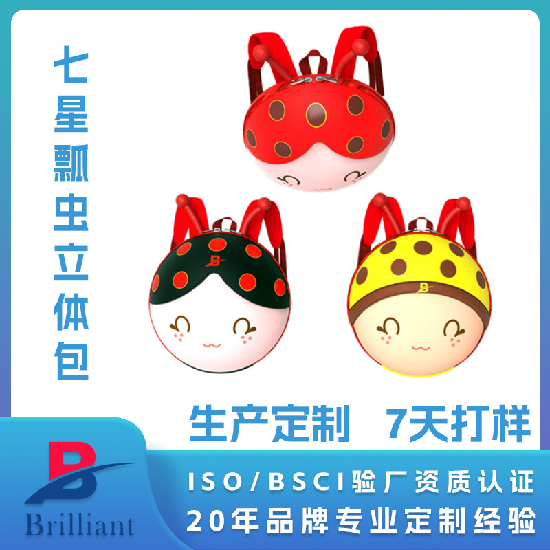子供の創意的なかばんの漫画の7星のテントウムシの立体の収納は幼稚園の赤ちゃんの男女の子供のリュックサックを包みます。