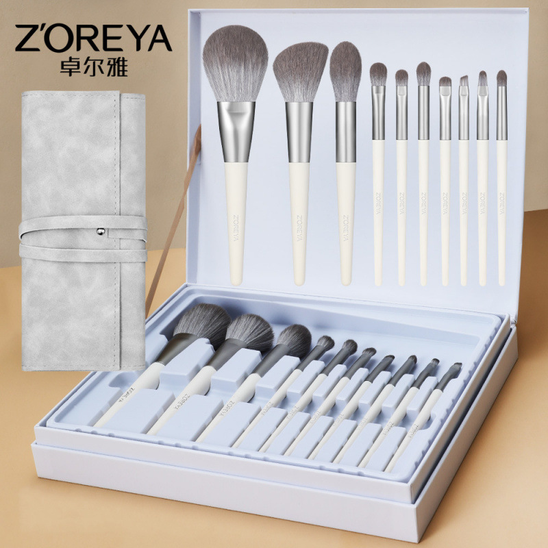 Zoelya ライト高級フルセットバイオニックシルバーフォックステールナノマイクロ彫刻美容ツールギフトボックス 10 個の化粧ブラシセット