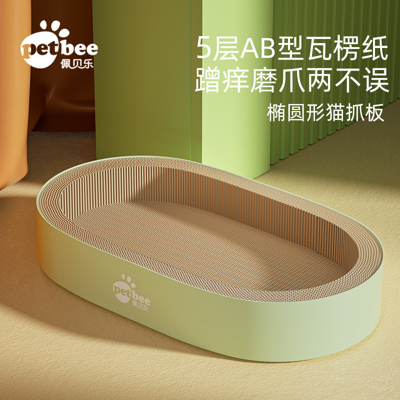 ペ貝楽猫は猫の巣をつかんで一体の楕円形の耐摩耗性の段ボールを取り除きます。