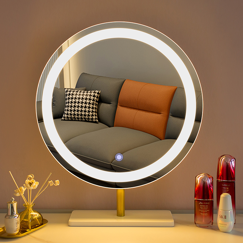 モダンでシンプルな化粧鏡デスクトップ LED ライト付き回転可能な寝室スマートライト高級化粧鏡プリンセスミラー