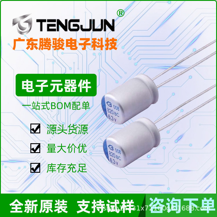 プラグインアルミコンデンサ820uf6.3v体積6.3*10インライン電解コンデンサ10% 高精度ソリッドステートコンデンサ