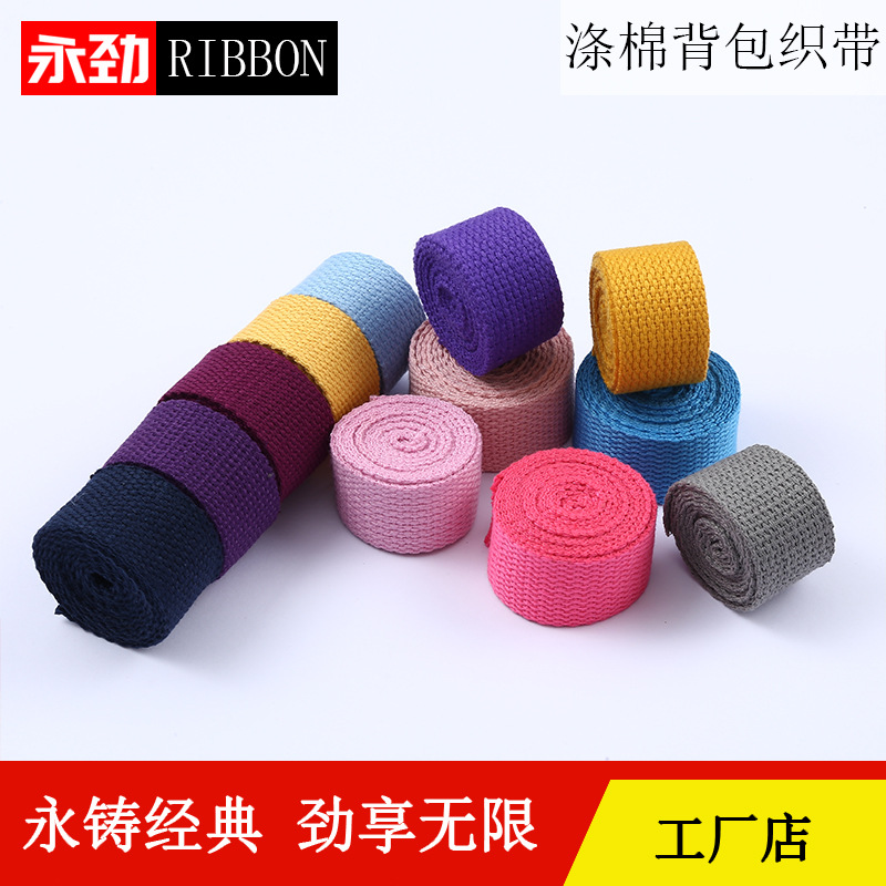 カラーのポリエステル綿のバックベルトは綿のカバンに似せて、キャンバスの布と袋の補助材料の義烏のリボンのメーカーの現物を持って供給します。