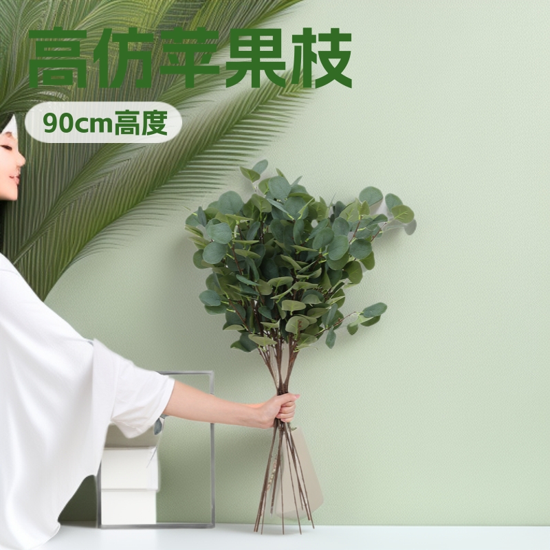 緑植単枝高擬似リンゴ枝絹布造花家庭客間装飾生け花5叉ユーカリ葉