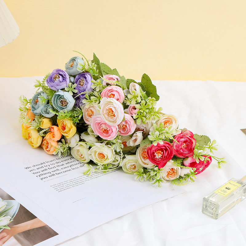 模造花韓国薔薇15頭ミニ薔薇家庭装飾生け花結婚式花嫁手抱花ショーウインドー置物