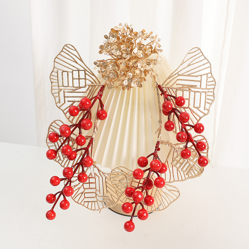 擬似年花セットホーム新年夜花紅果金色セットドアと窓の吊り下げ飾り造花