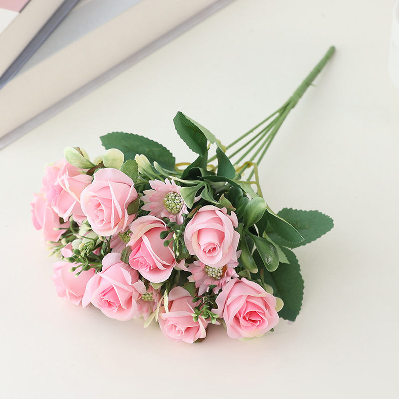 模造花短枝薔薇家庭生け花装飾造花結婚式配置ホテルデパート造景波薔薇