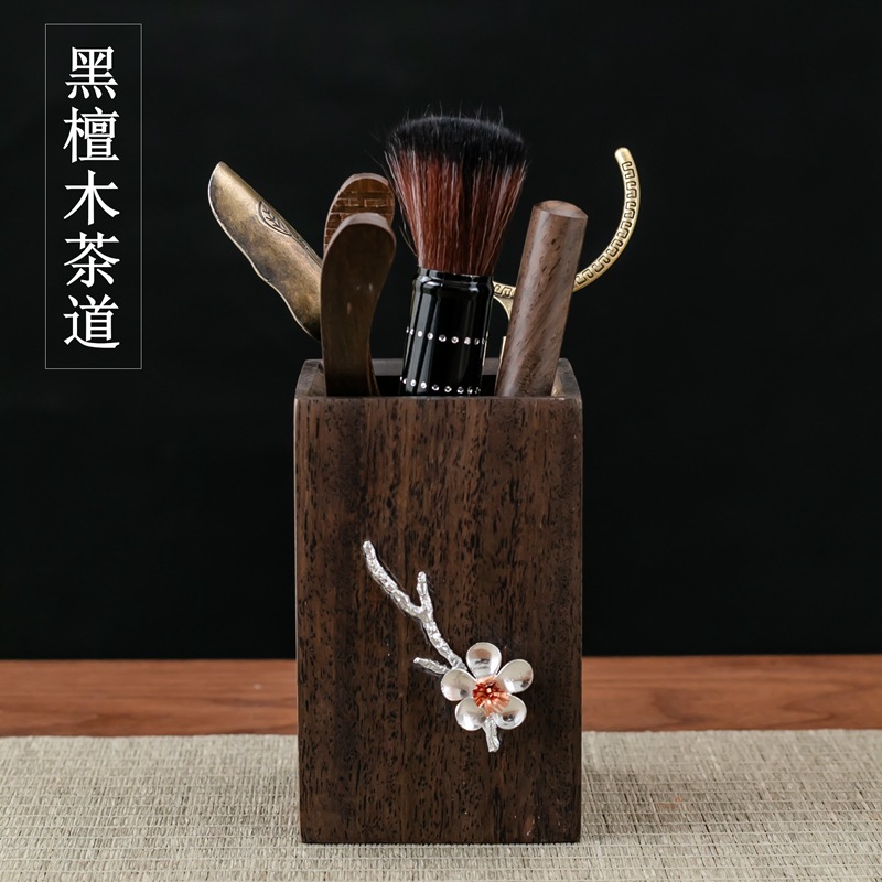 黒檀木花梨木茶道六君子筒樽紅木彫り木筆筒実木黄銅茶道収納卸売り