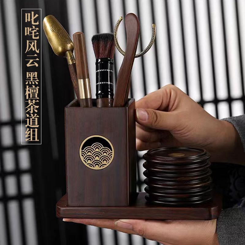 紫砂茶道六君子黒檀木セット陶磁器羊脂玉汝窯台座黒筆立て茶盤茶道具付属品