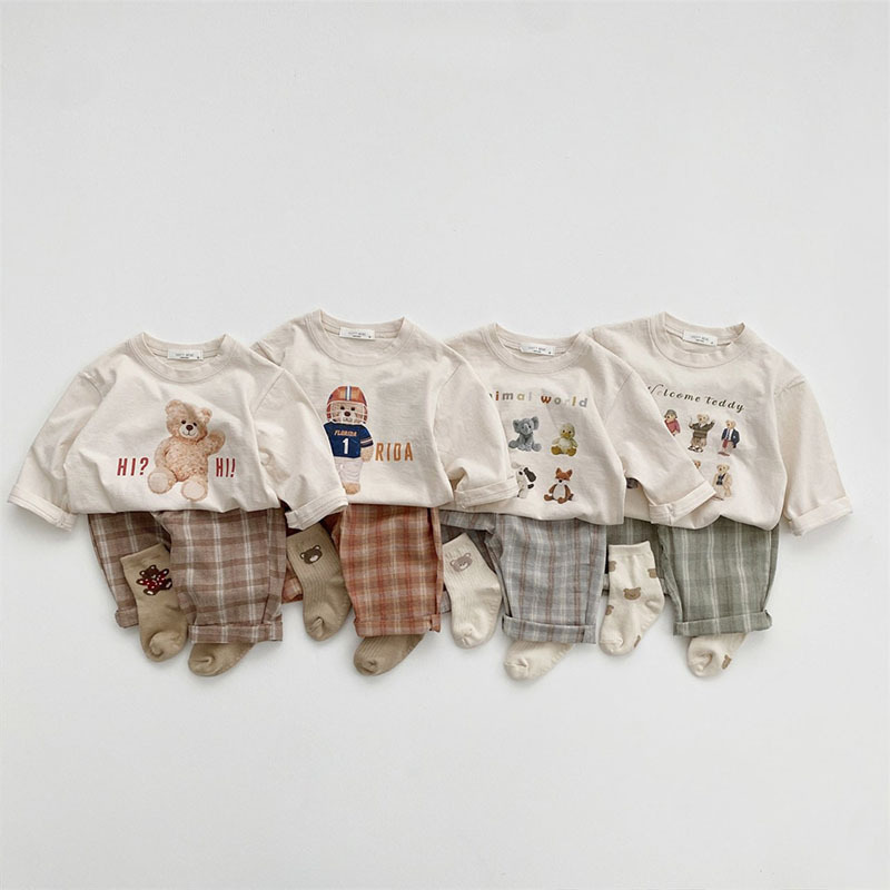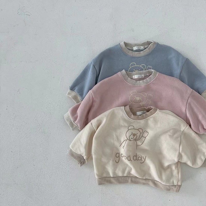 韓国の子供服の子供の長袖の丸首春と秋の漫画の熊の服の赤ちゃんの綿のかわいい女の子の上着の新型