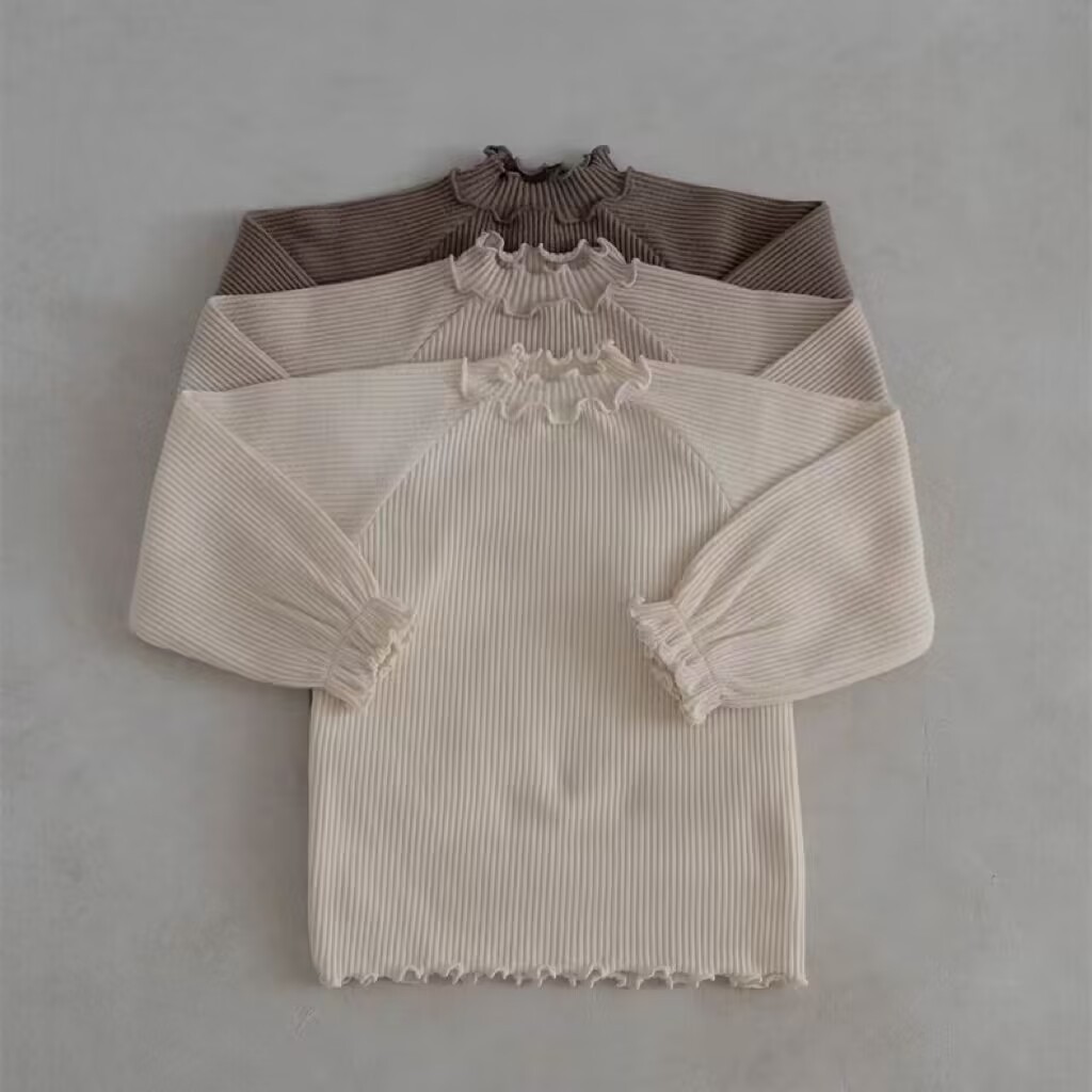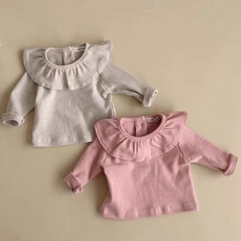 韓国版ins乳幼児秋装襟2周木耳高襟修身シャツ月齢赤ちゃん弾力長袖洋