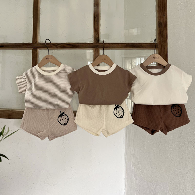 韓国版男女赤ちゃん夏服綿セットins子供レトロカジュアルゆったり半袖半ズボン2点セット