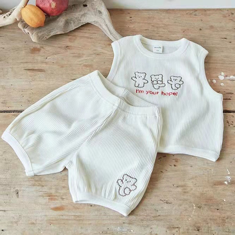 韓国版ins乳幼児かわいい洋気熊セット夏の新型赤ちゃんノースリーブベストパンツ2点セット