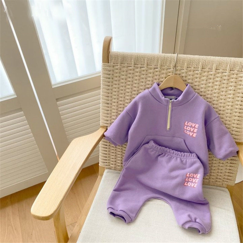 2022韓国版春ins子供のアルファベットの中の高襟の衛衣 + ズボンのスーツの子供の赤ちゃんの2つのセット