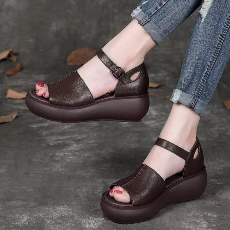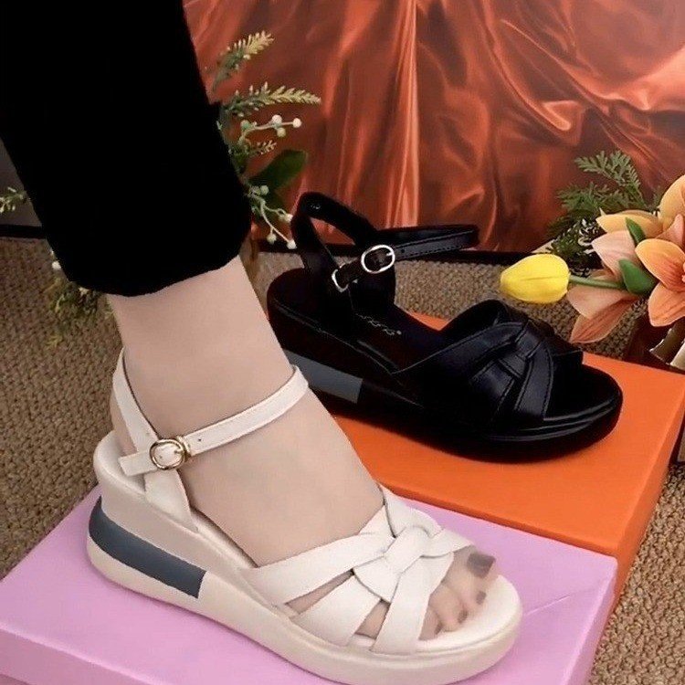 2024年夏の新型の厚い底の韓国版のサンダルの女性はスカートを合わせて高くなります。
