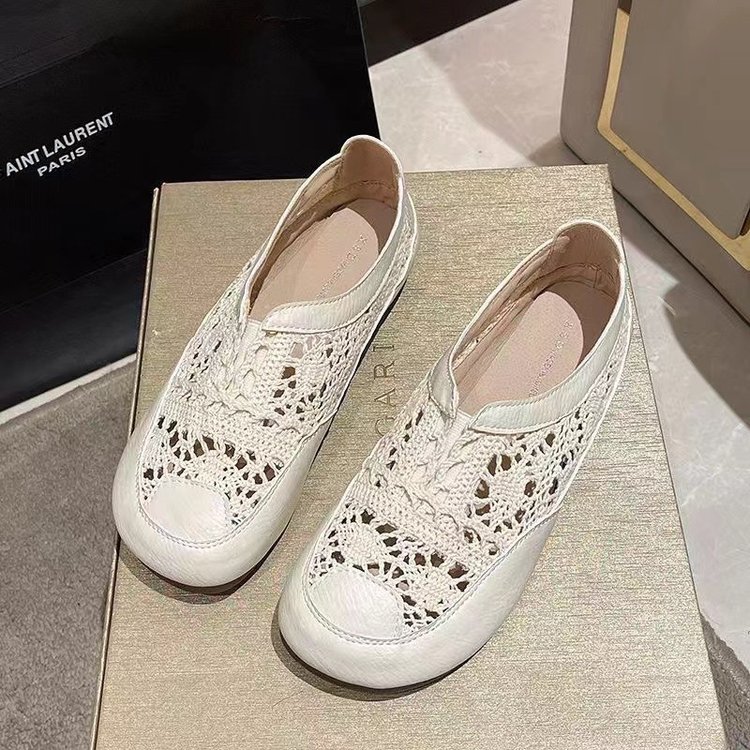 2024年春夏の透かし彫り文芸レトロ平底怠け者レースネット面低助浅口靴漁師靴女